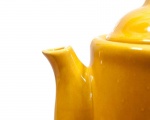Bề mặt ấm được trang trí bằng họa tiết mai vàng nổi bật, mang ý nghĩa may mắn