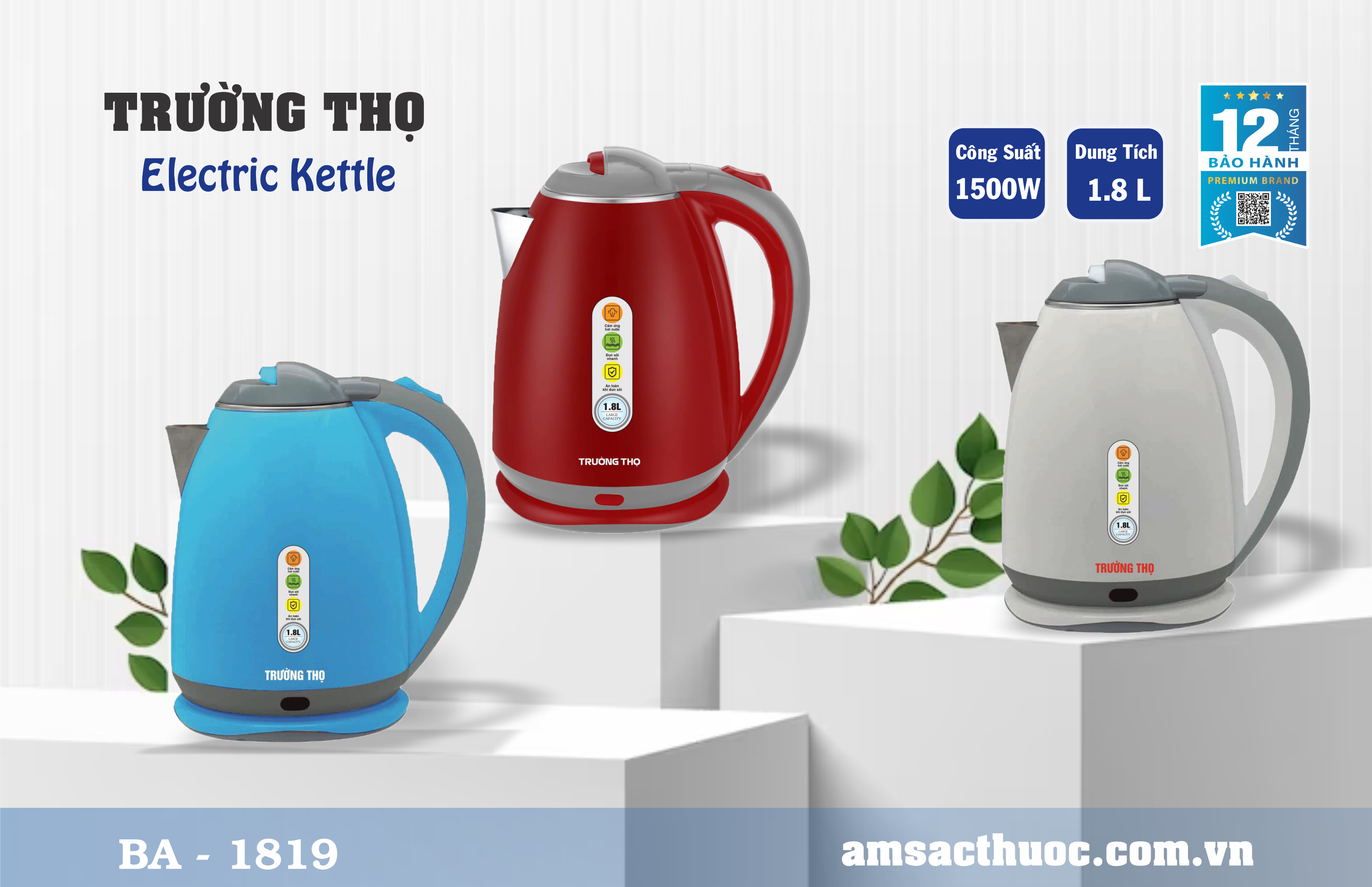 Ấm Siêu Tốc Inox Trường Thọ BA-1819