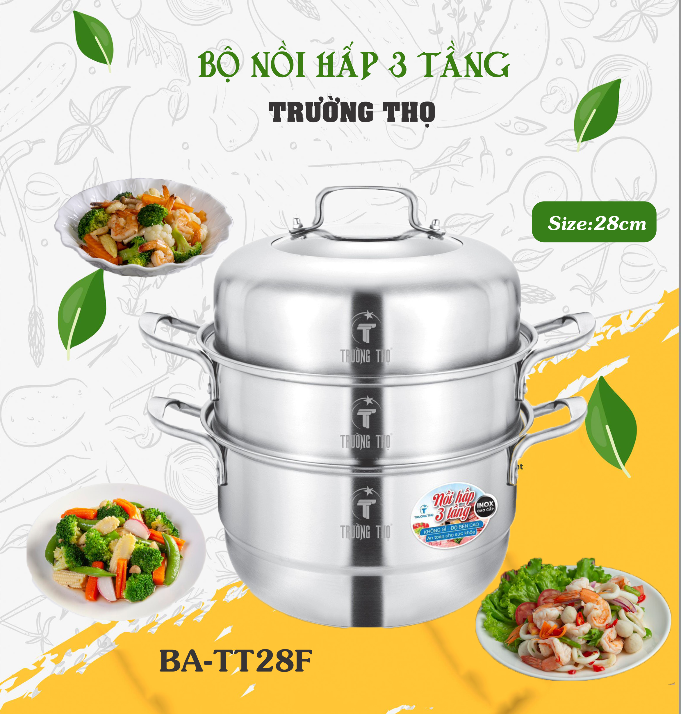 Bộ Nồi Hấp 3 Tầng Trường Thọ BA-TT28F